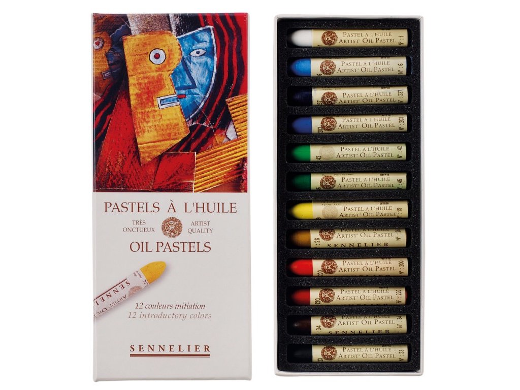 Kompaktná sada 12 olejových pastelov Sennelier – Základné odtiene ponúka starostlivo vybraný základ farebnej palety, ideálny pre prvé zoznámenie s profesionálnymi olejovými pastelmi alebo pre prácu na cestách.